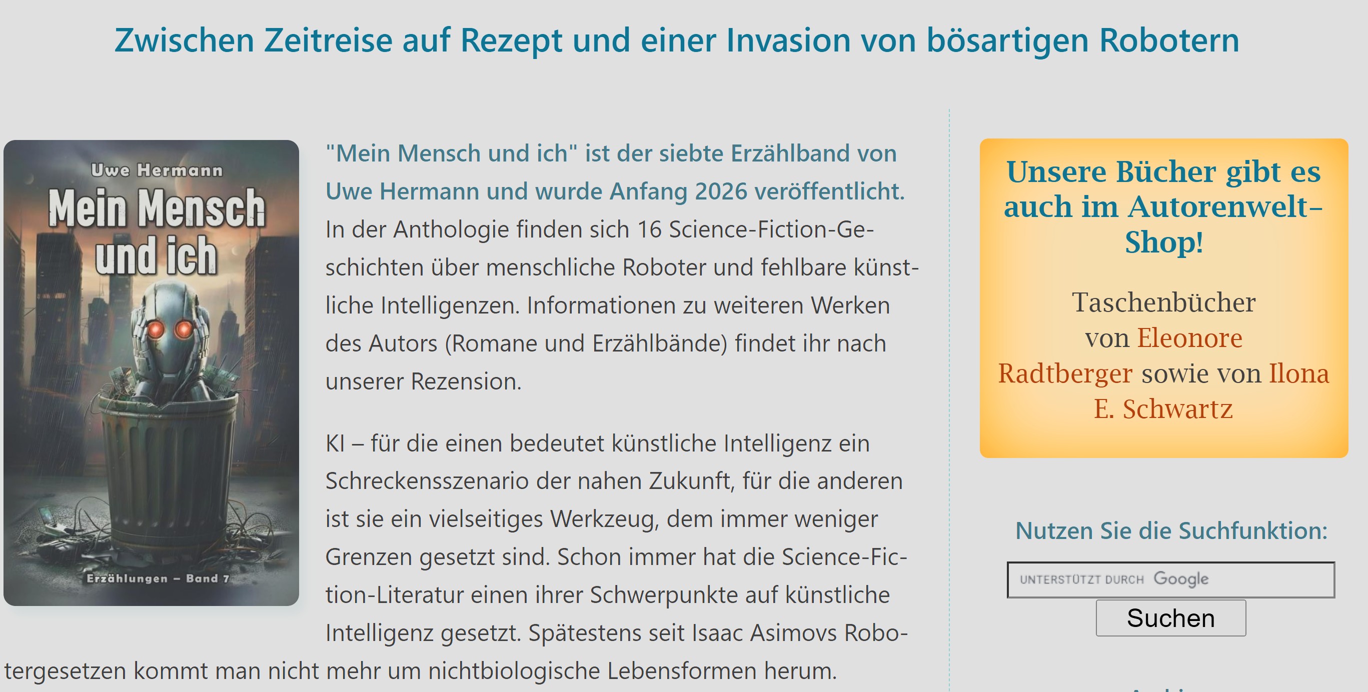 Man sagt, ich hätte in der deutschen Science-Fiction-Landschaft meine Spuren hinterlassen – zumindest stehen in meinem Regal einige Kurd Laßwitz Preise und der Deutsche Science-Fiction-Preis, die das behaupten. Aber im Kern geht es mir um etwas ganz anderes: Ich liebe die Kurzgeschichte.